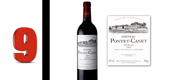 Château Pontet Canet takes the 9th place in our Top Ten, with 2.6 percent share of trade on the exchange. Of the 120 hectares (300 acres) estate of Pontet-Canet located in the northern end of the Pauillac commune, across the road from first growth Château Mouton Rothschild, 80 ha (200 acres) are under vine. The soil composition is mainly gravel over a subsoil of clay and limestone. The grape variety distribution is 60 perent Cabernet Sauvignon, 33 percent Merlot, 5 percent Petit Verdot and 2 percent Cabernet Franc. Vines average 35 years of age. Pontet-Canet has one of the largest productions of any classified growth in the Medoc with a production of nearly 20,000 cases of its grand-vin, and another 20,000 cases of its second wine, Les Hauts de Pontet. Harvesting is done by hand, and after sorting the grapes are moved into the estate’s gravity-feed cellars for crushing. Fermentation takes place in a mixture of concrete and stainless steel vats. Wines are aged for 16-20 months in up to 60 percent new oak barrels before fining with egg whites and bottling.